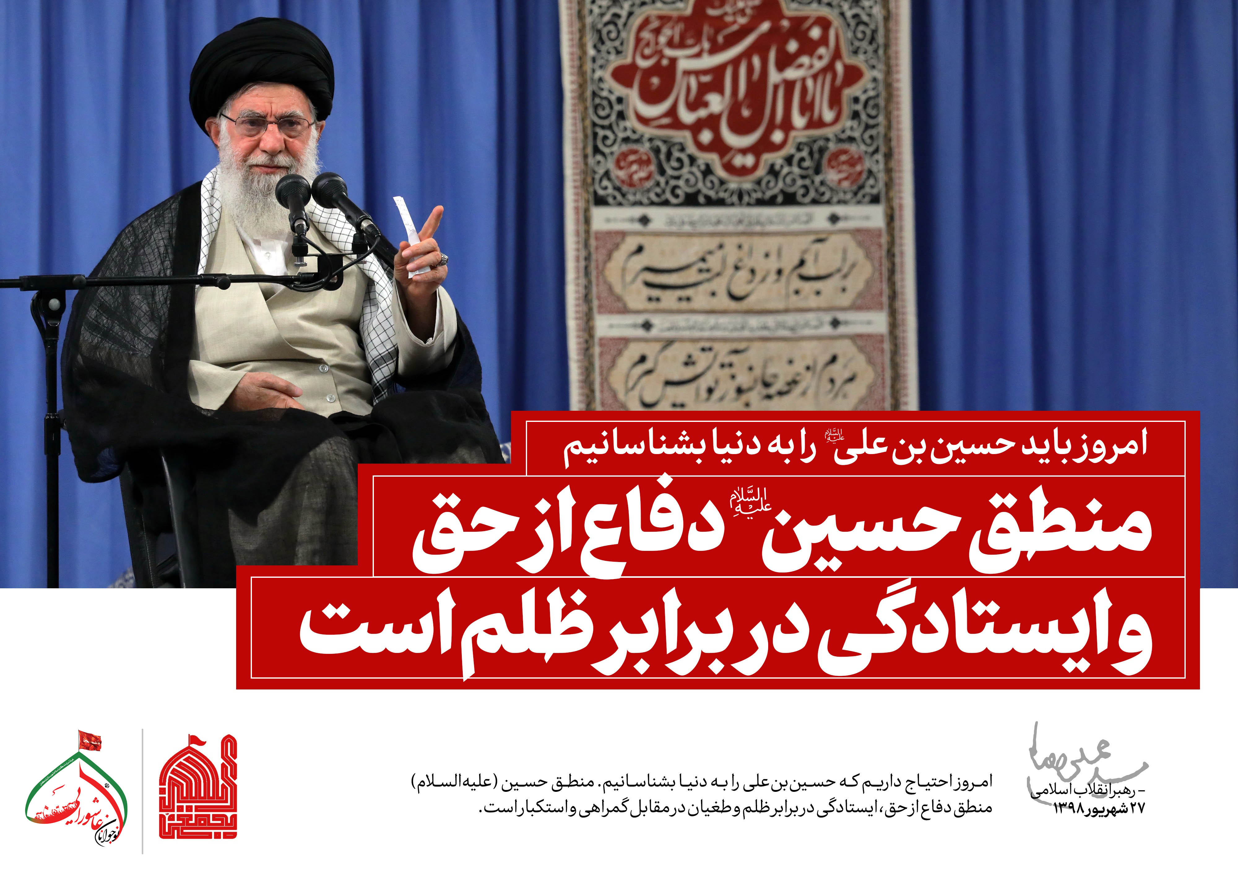 رهبر انقلاب اسلامی با تأکید بر اینکه منطق و پیام امام حسین علیهالسلام نجاتبخش دنیا از حاکمیت جبههی کفر و استکبار خواهد بود، گفتند: منطق امام حسین علیهالسلام منطق دفاع از حق و ایستادگی در مقابل ظلم و طغیان و گمراهی و استکبار است و جوانان دنیا و ملتهای بیغرض، امروز تشنه و نیازمند این منطق هستند و حرکت عظیم راهپیمایی اربعین میتواند معرفت و منطق حسینی را به دنیا معرفی کند.