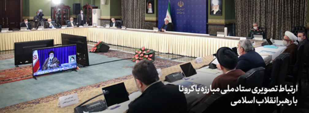 ۱) در ابتدای این ارتباط تصویری، حجّتالاسلام والمسلمین حسن روحانی (رئیس جمهور)، سرلشکر محمّد باقری (رئیس ستاد کلّ نیروهای مسلّح)، دکتر سعید نمکی (وزیر بهداشت، درمان و آموزش پزشکی) و آقای عبدالرّضا رحمانیفضلی (وزیر کشور) گزارشهایی ارائه کردند.