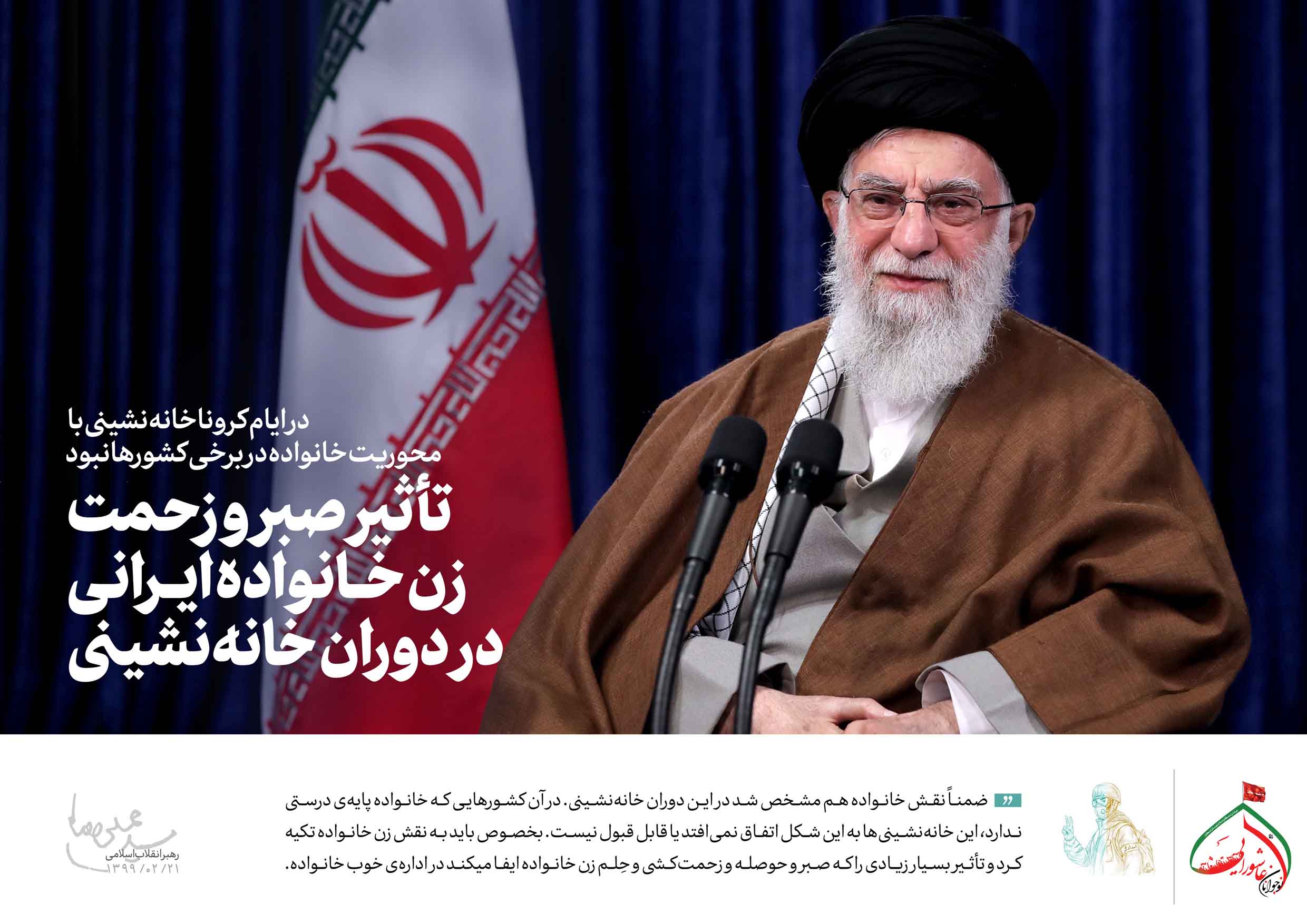 ضمناً نقش خانواده هم مشخّص شد در این دوران خانهنشینی -تقریباً میشود گفت خانهنشینی عمومی- اینجا نقش خانواده و حضور خانواده اثر خودش را نشان داد. در آن کشورهایی که خانواده پایهی درستی ندارد، معنای درستی ندارد، این خانهنشینیها به این شکل اتّفاق نمیافتد یا لااقل به این شکلِ قابل تحمّل و قابل فهم و قابل قبول نیست. اینجا خانواده دُور هم جمع شدند؛ بخصوص باید به نقش زن خانواده تکیه کرد و تأثیر بسیار زیادی را که صبر و حوصله و زحمتکشی و حلم زنِ خانواده ایفا میکند در ادارهی خوب خانواده، حتماً بایستی از نظر دور نداشت.