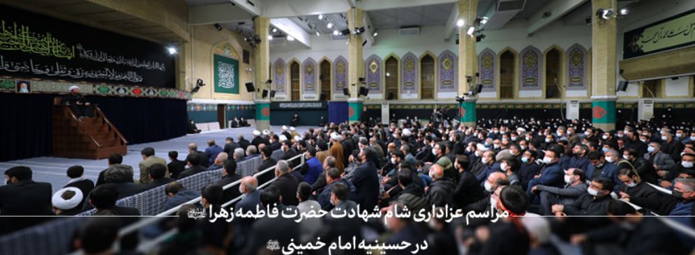 همزمان با شام شهادت حضرت زهرا سلاماللهعلیها مراسم عزاداری با حضور رهبر انقلاب اسلامی و جمعی از مردم، در حسینیه امام خمینی(ره) برگزار شد.