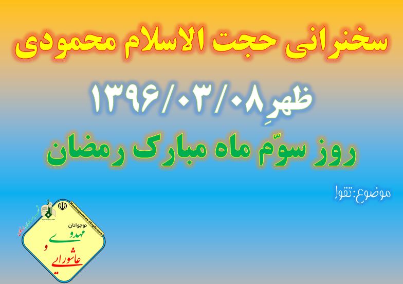 در سومین ظهر از ماه مبارک رمضان پس از برگزاری نماز ظهر و عصر حجت الاسلام محمودی به سخنرانی با موضوع:(تقوا)پرداختند.